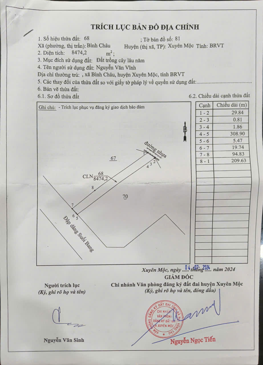Chủ cần bán gấp lô này! TT Phước bửu (cũ) xã Hồ Tràm TPHCM. Dt 10m x 40m thổ cư 234m2 2 mt đường đất 6m ( QH thêm đường lớn số 6) giá 2,7ty tl Gọi ngay 0902787552- 0937849600 lvtt chủ