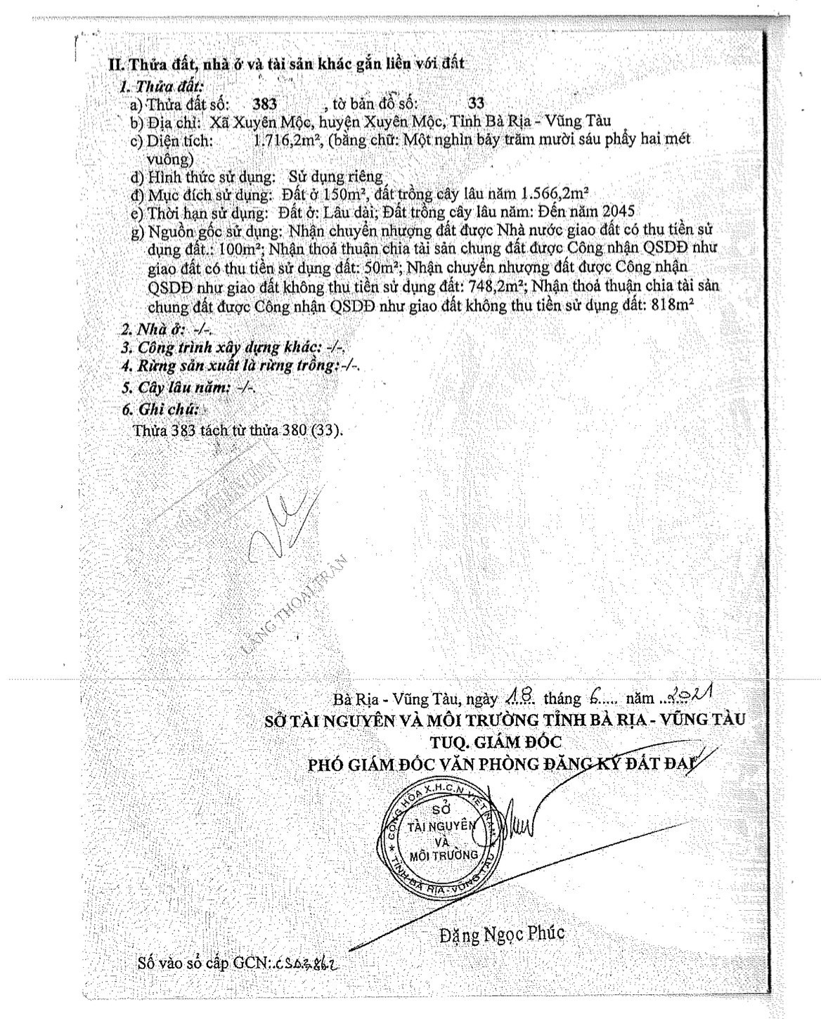 ** Diện tích: 1716,2m2 (150m2 thổ cư)