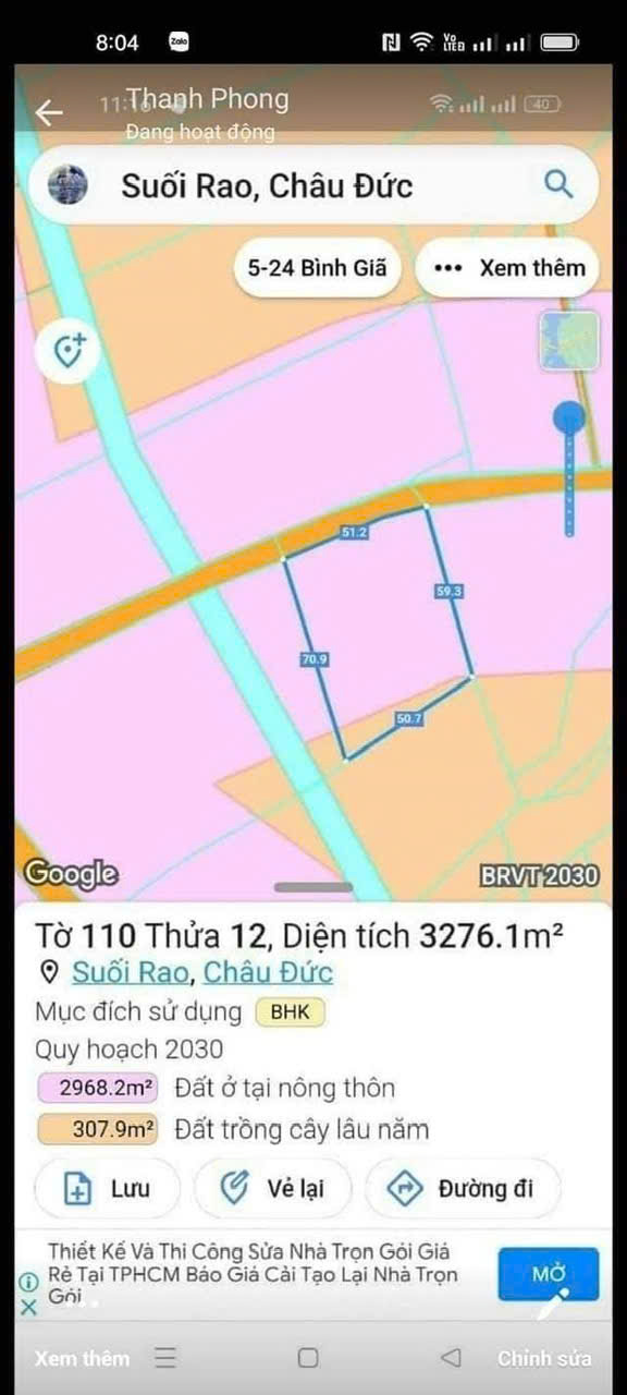 CHÍNH CHỦ BÁN SIÊU PHẨM ĐẤT ĐẸP 2 MẶT TIỀN ĐƯỜNG NHỰA- Phù Hợp Cho Mọi Gia Đình - Anh Chị đang tìm ĐẤT đẹp VIEW Suối chạy quanh năm , vị trí tiềm năng , hạ tầng hoàn thiện để đầu tư hoặc an cư lạc nghiệp? - Đây chính là sản phẩm đáng sở hữu nhất tại trung tâm hiện nay! - Diện tích : 1.827,1m2 - Vị trí ĐẮC ĐỊA TẠI : Thôn 5- Xã Bình Trung - Huyện Châu Đức- Tỉnh Bà Rịa Vũng Tàu - Giá cực mềm : 2 TỶ 500 ( bớt lộc cho khách thiện chí ) - Giao thông: Đường lớn ô tô vào tận nơi, di chuyển thuận tiện. - Pháp lý: Rõ ràng – chuẩn chỉnh – an toàn giao dịch. - Tiện ích: Gần trung tâm, trường học , chợ , bệnh viện ...khu dân cư đông đúc, hạ tầng hoàn thiện. - Tiềm năng: Kề cận nhiều dự án đang hình thành; kết nối nhanh qua các nút giao cao tốc, thuận tiện đi các thành phố lớn. - Thích hợp: Đầu tư lướt sóng, giữ tài sản, làm homestay hoặc mô hình du lịch nghỉ dưỡng nhỏ. - TIỀM NĂNG LỚN: Giá trị BĐS ngày càng tăng đảm bảo đầu tư sinh lời cao - Liên Hệ CHÍNH CHỦ SĐT : 0342.083.172