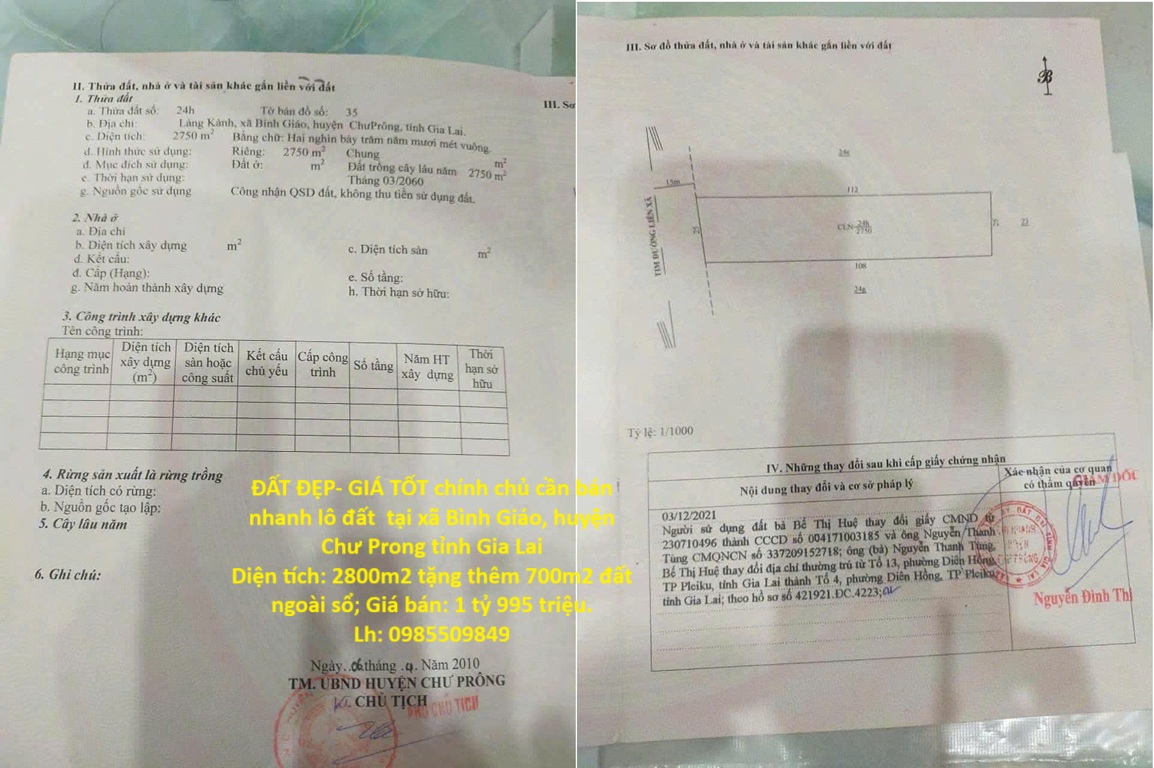 Địa chỉ: xã Bình Giáo, huyện Chư Prong tỉnh Gia Lai