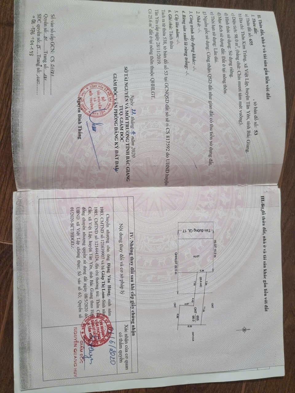 CHÍNH CHỦ CẦN BÁN SIÊU PHẨM 1 LÔ ĐẤT ĐẤU GIÁ ĐẸP - Phù Hợp Cho Mọi Gia Đình - Anh Chị đang tìm ĐẤT đẹp , vị trí tiềm năng , hạ tầng hoàn thiện để đầu tư hoặc an cư lạc nghiệp? - Đây chính là sản phẩm đáng sở hữu nhất tại trung tâm hiện nay! - Diện tích : 114m - MẶT TIỀN 6m - Vị trí ĐẮC ĐỊA TẠI : Đồng Lim - Ngọc Ly - Tân Yên- Bắc Giang ( cũ ) - Vị trí hót nhất Tân Yên: Cách Tỉnh lộ 295 vào 100m - Sát ngay bên Khu Dân cư ngọc lý đã quy hoạch có bản đồ 1/500. Chuẩn bị khởi công. - Giá hợp lí nhất khu chỉ : 1 tỷ 8 ( bớt lộc cho khách thiện chí ) - Giao thông: Đường lớn ô tô vào tận nơi, di chuyển thuận tiện. - Sát cụm công nghiệp Ngọc lý 75ha. Đã công bố và đền bù dân. - Pháp lý: Rõ ràng – chuẩn chỉnh – an toàn giao dịch. - Tiện ích: Gần trung tâm, chợ , bệnh viện ...khu dân cư đông đúc, hạ tầng hoàn thiện. Gần trường cấp 1,2 mầm non Ngọc lý - Tiềm năng: Kề cận nhiều dự án đang hình thành; kết nối nhanh qua các nút giao cao tốc, thuận tiện đi các thành phố lớn. - Thích hợp: Đầu tư lướt sóng, giữ tài sản, làm homestay hoặc mô hình du lịch nghỉ dưỡng nhỏ. - TIỀM NĂNG LỚN: Giá trị BĐS ngày càng tăng đảm bảo đầu tư sinh lời cao - Liên Hệ CHÍNH CHỦ SĐT : 0356.931.386 ( EM DUNG)