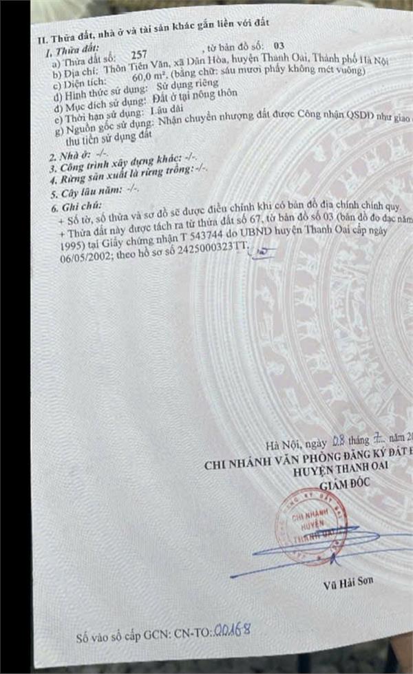 đất đẹp - giá tốt - vị trí đắc địa tại thôn tiên văn, xã dân hòa,
