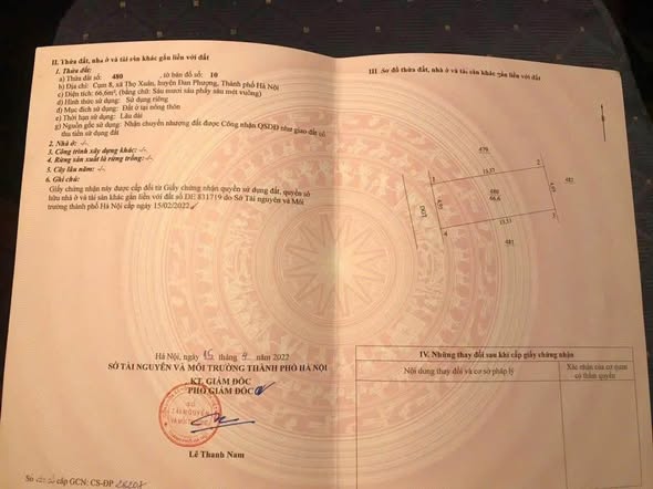 BÁN ĐẤT PHƯƠNG VINH – ĐAN PHƯỢNG Diện tích: 42.1m² – MT = Hậu 4m, đất vuông cực đẹp Giá chào: 3.1 tỷ. Ô tô vào tận nơi Gần TL417, trường THPT Thọ Xuân, vài bước ra trục Tây Thăng Long Sổ đỏ đẹp, sang tên ngay. Liên hệ trực tiếp để xem đất.
