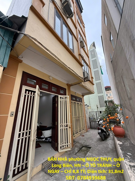 BÁN NHÀ NGÕ 66 NGỌC THỤY – LONG BIÊN GẦN PHỐ – Ô TÔ TRÁNH – THANG MÁY – FULL NỘI THẤT Vị trí:Ngõ 66 Ngọc Thụy, Long Biên – khu vực kinh doanh sầm uất, dân cư đông đúc.Cách vài nhà ra ngõ ô tô tránh.<50m ra mặt phố Ngọc Thụy.200m tới TTTM Mipec Long Biên.Kết nối nhanh cầu Long Biên, cầu Chương Dương vào phố cổ. Thông số:Diện tích: 34m²Mặt tiền: 3.5mKết cấu: 6 tầng + 1 tumCó thang máy Nội thất:Full nội thất cao cấp: giường, tủ, bàn, ghế…Bàn giao đầy đủ, vào ở ngay Thiết kế công năng: Tầng 1: Gara/để xe + phòng khách nhỏ Tầng 2: Phòng khách lớn + phòng ăn + bếp Tầng 3–5: Mỗi tầng 1 phòng ngủ rộng + WC khép kín Tầng 6: Phòng thờ + sân phơi thoáng Giá bán:9.8 tỷ Pháp lý:Sổ đỏ chính chủ, pháp lý chuẩn, sẵn sàng giao dịch Liên hệ: o0o-@383/15/01/80-o0o