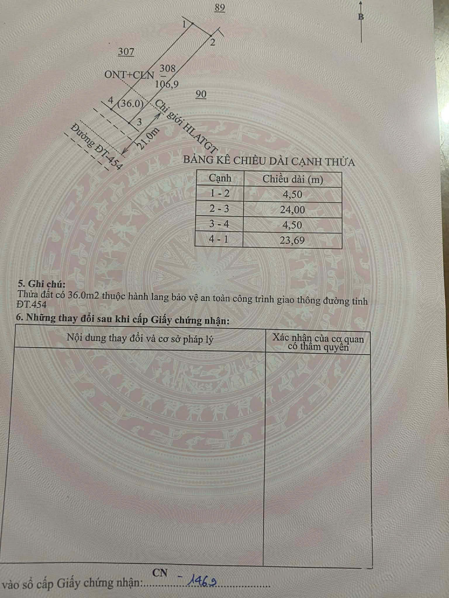 Diện tích : 106,9m2, Mặt tiền chính rộng 4.5m