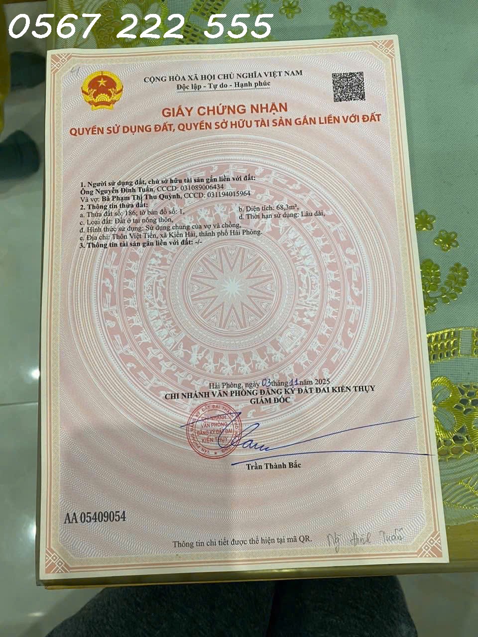 LÔ RỘNG 92.5M² + 65.4M² VƯỜN – GIÁ 1.8XX TỶ – ĐƯỜNG 5M ĐOÀN XÁ ZALO 0567 222 555 -Diện tích: 92.5m² thổ cư + 65.4m² vườn-Mặt tiền: 5.1m đẹp-Đường trước đất: 5m ô tô tải vào-Vị trí: Đoàn Xá, Kiến Thụy-Gần cảng nước sâu & tuyến logistics – hưởng lợi lớn từ hạ tầng-Gần cụm KCN, khu dân cư mở rộng nhanh-Pháp lý: Sổ riêng, tách thửa chuẩn-Giá: 1.8xx tỷ-Tiềm năng: Lô rộng hiếm, cách trung tâm xã gần, thích hợp xây nhà vườn – quỹ đất lớn đang tăng mạnh theo tốc độ công nghiệp hóa Kiến Thụy Liên hệ xem đất – lô to, giá tốt, pháp lý rõ ràng. ============================================NHÀ ĐẤT ANH MINH 782 Phạm Văn Đồng, Dương Kinh, Hải PhòngTrọng Điểm: Dương Kinh • Đồ Sơn • Kiến ThụySĐT/ZALO: 0567 222 555#BatDongSanHaiPhong #KienThuy #DoanXa #LoRong #CoHoiDauTu #ThanhKhoanTot