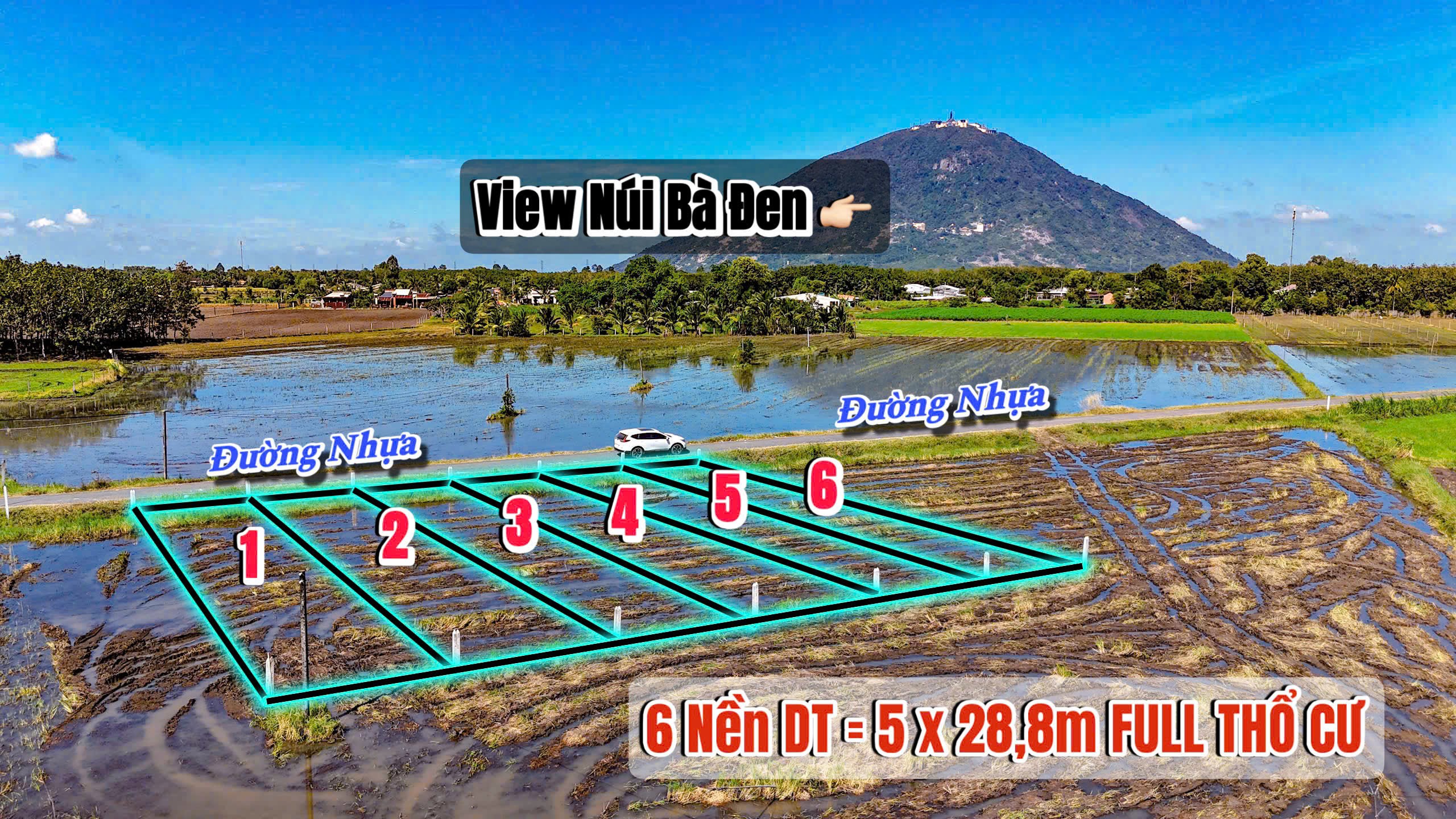 mặt tiền đường nhựa view trực diện núi bà đen full thổ cư 140m2 sẵn