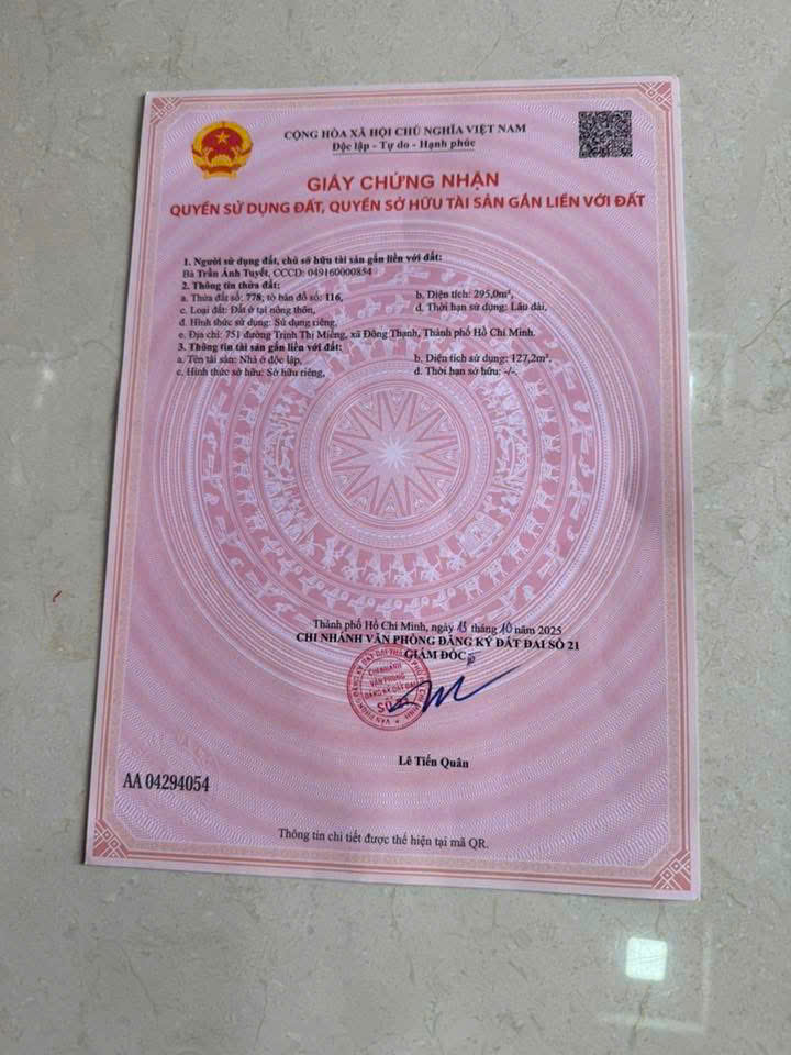 SIÊU HOT NHÀ MẶT TIỀN 12M ĐÔNG THẠNH – 1 TRỆT LỬNG 2 LẦU – GIÁ CHỈ 5.8 TỶ Đông Thạnh 7-3 – TP.HCM Mặt tiền nhựa 12m – xe hơi quay đầu – kinh doanh cực tốt. Thông tin nổi bật: Diện tích: 5m x 16m (80m²) Xây dựng: 5m x 14m Kết cấu: 1 trệt + 1 lửng + 2 lầu Thiết kế hiện đại – tối ưu công năng – dọn vào ở ngay. Lợi thế vàng: Khu dân cư hiện hữu – an ninh – đông đúc Phù hợp: ở + kinh doanh + cho thuê Tiện ích đầy đủ: gần chợ, trường học, bách hóa, nhà thờ Pháp lý: Sổ riêng từng căn Hỗ trợ thủ tục nhanh gọn. Giá bán: CHỈ 5.8 TỶ (còn TL) GIÁ TỐT KHÓ TÌM Thanh toán linh hoạt: Đợt 1: 50% – công chứng Đợt 2: 40% – nhận nhà Đợt 3: 10% – sang tên Liên hệ ngay: Ms Mỹ - 0909.805.456 Xem nhà thực tế – chọn căn đẹp – chốt nhanh kẻo hết!