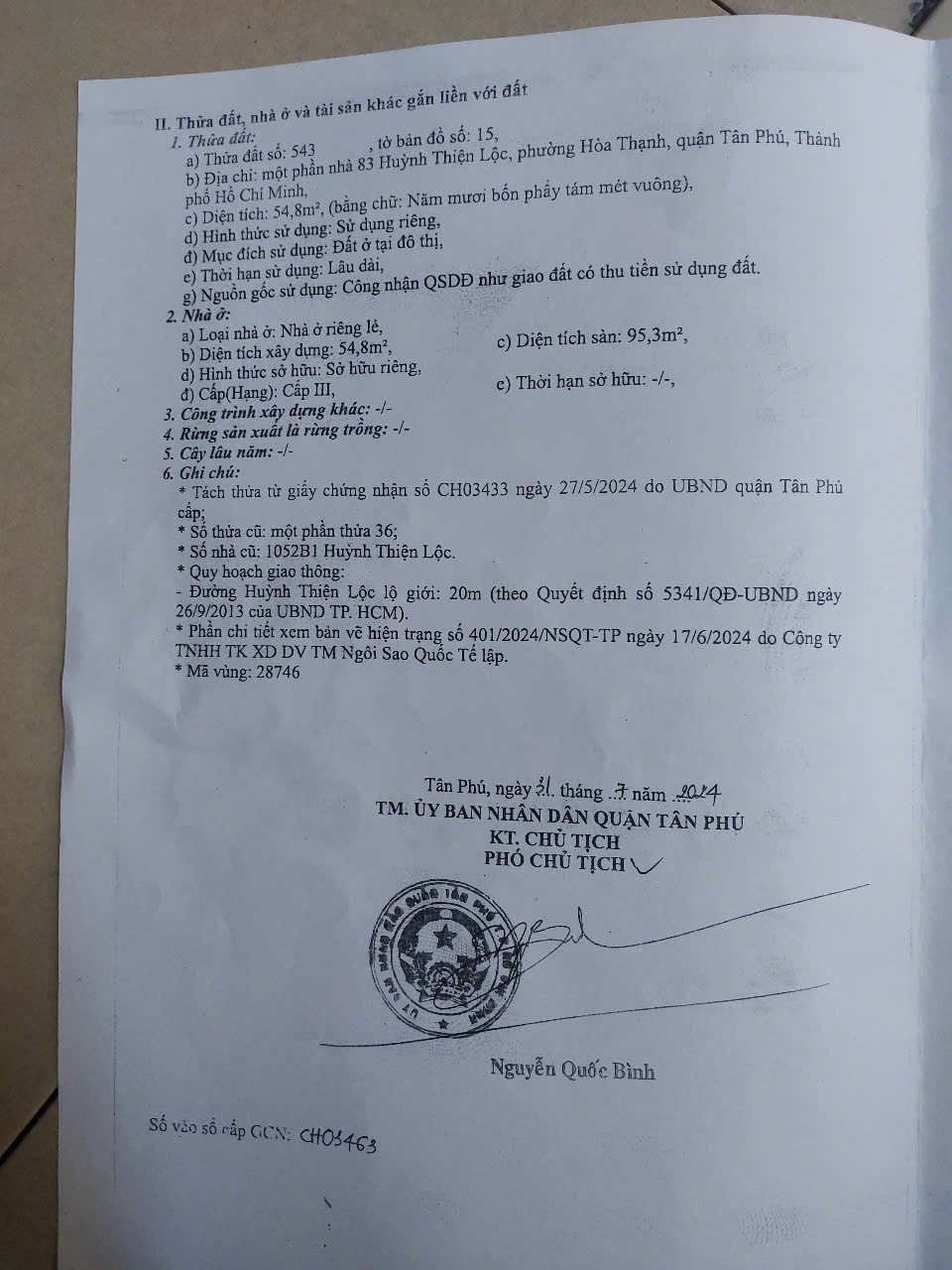 Địa chỉ: nhà 83 Huỳnh Thiên lộc, phường Hòa Thạnh, quận Tân Phú, TPHCM