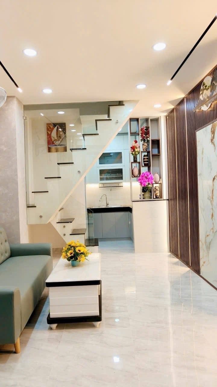 -Diện tích: 4.3m x 16m, nở hậu nhẹ phong thuỷ. - Kết cấu: Trệt – 2 lầu – sân thượng, thiết kế tinh tế, thoáng sáng tự nhiên. - Gồm 3 phòng ngủ rộng, 4WC, ban công mát mẻ, có khu giặt – phơi riêng. - Nhà xây mới 100%, nội thất nhập khẩu, trang trí phong cách Modern Luxury cực sang trọng – chỉ việc xách vali vào ở. - Tiếp khách thiện chí. - Thông tin thật
