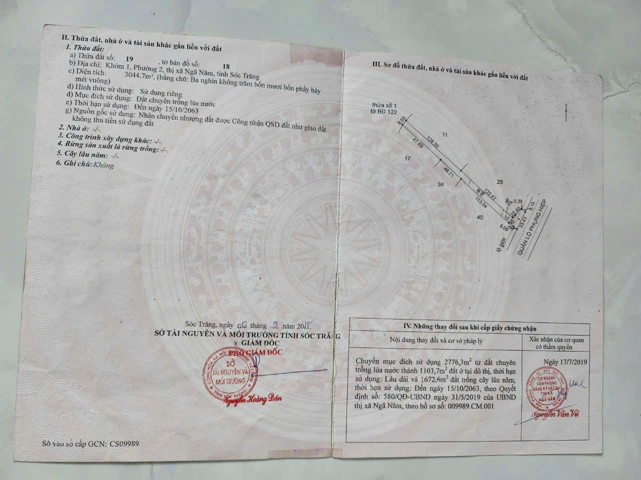 + Thửa số 19 diện tích 3044.7 m² trong đó cos