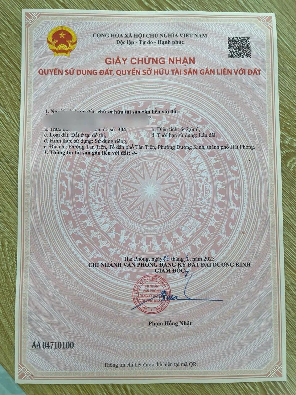 GIÁ HIẾM – ĐẤT THỔ CƯ NGÕ 82 HÒA NGHĨA – ZALO 0567 222 555-Diện tích: 69,5m²-Mặt tiền: 4m-Đường/ngõ: Ngõ bê tông gần 3m, ô tô vào tận nơi-Vị trí: Ngõ 82 Hòa Nghĩa, gần Vinhomes Dương Kinh – kết nối nhanh trung tâm-Pháp lý: Sổ đỏ trao tay-Tiện ích: Gần chợ, trường học, cụm dịch vụ – khu dân cư hiện hữu-Tiềm năng: Khu vực đang nâng cấp hạ tầng – biên độ tăng giá tốt-Giá: 2x triệu/m²Quan tâm liên hệ ngay để giữ lô đẹp trước khi tăng giá. ============================================NHÀ ĐẤT ANH MINH 782 Phạm Văn Đồng, Dương Kinh, Hải PhòngTrọng Điểm: Dương Kinh • Đồ Sơn • Kiến ThụySĐT/ZALO: 0567 222 555#BatDongSanHaiPhong #DuongKinh #HoaNghia #VinhomesDuongKinh #CoHoiDauTu #ThanhKhoanTot