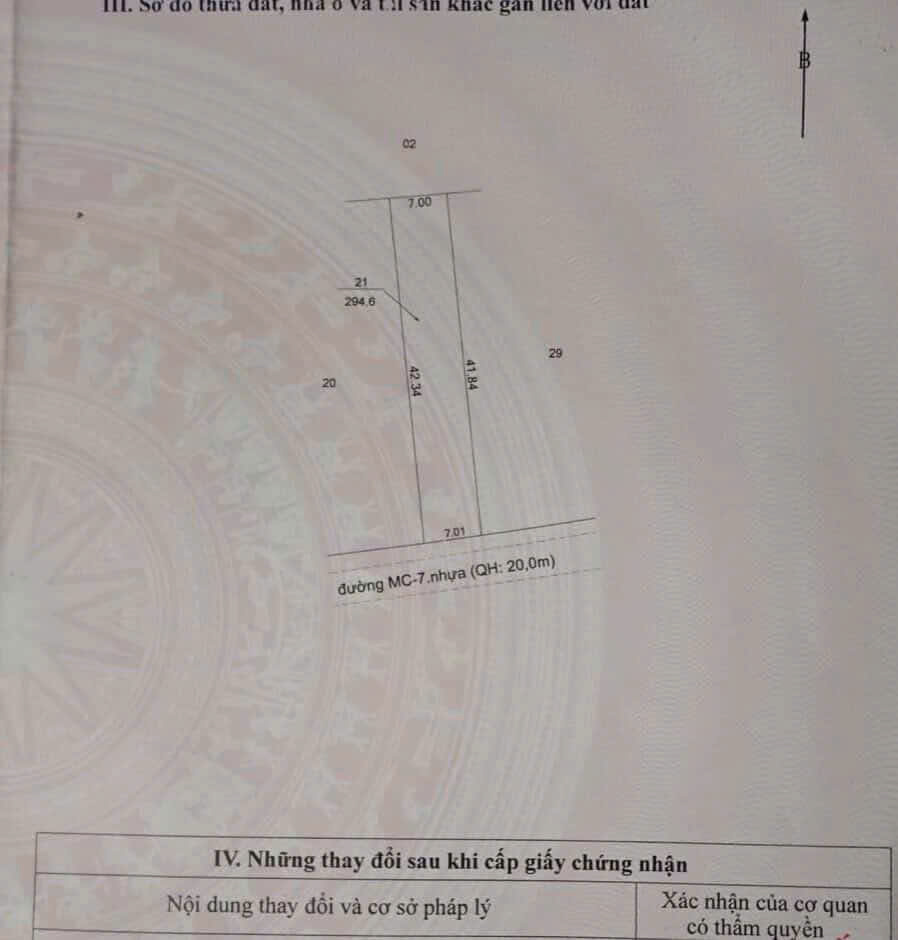- Diện tích : 294,6m2( 7x42) thổ cư 100m2. Đất ngay đường nhựa gần QL22 ngay cây xăng 19 đi vào. Từ đất qua chợ Mỏ Công chưa tới 10 phút
