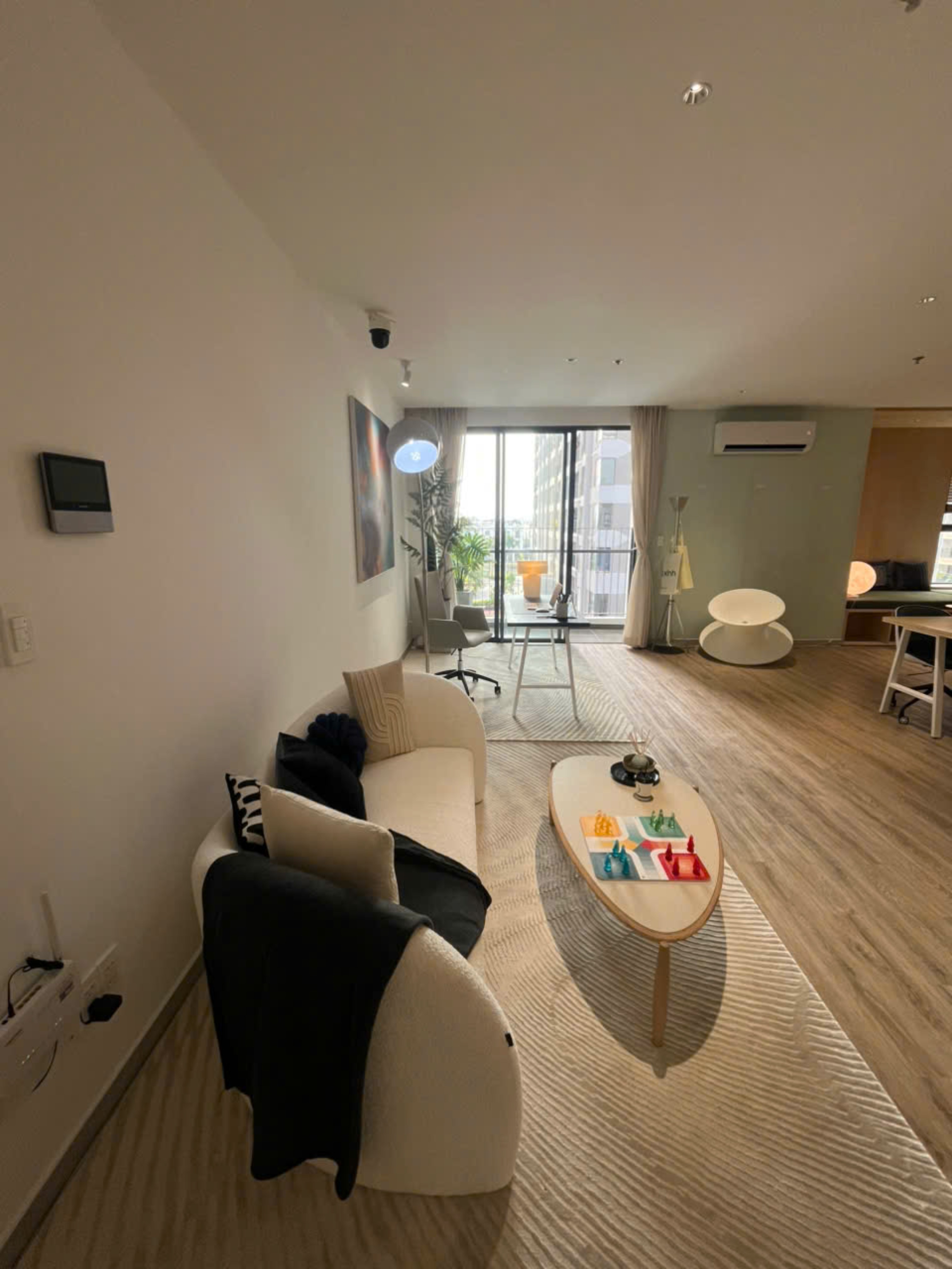 - Nội thất bàn giao: Cửa chống cháy An Cường, khóa từ 4 chức năng linh hoạt, video call kết nối sảnh lễ tân, trần thạch cao toàn căn hộ, sàn gỗ cho tất cả phòng ngủ, hệ tủ bếp trên dưới bọc acrylic, mặt bếp solid surface cao cấp, ốp lưng bếp glasskote nhập khẩu, phòng vệ sinh trang bị Duravit & Hansgrohe.