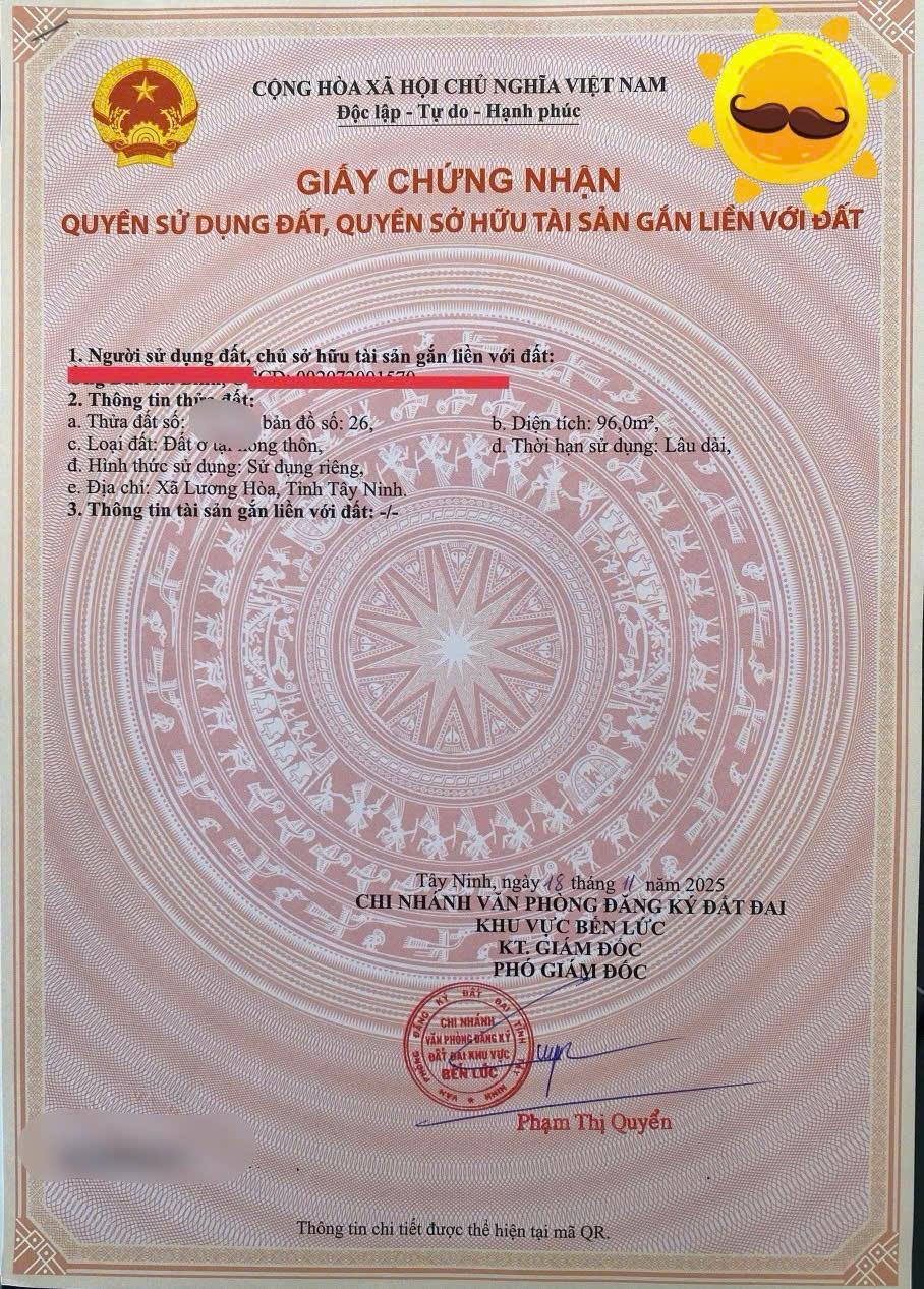Mở bán khu dân cư Mai Bá Hương xã Lương Hòa- Dragon Eden. Sổ riêng từng nền. Xây dựng tự do Giá chỉ từ 2,3ty/nền Thông tin sản phẩm: Qui mô: 5338 nền, Đợt 1 sẽ triển khai 700 nền Tổng diện tích 146,8ha Đất nền: diện tích điển hình nền liền kề 5mx18m Ngoài ra còn các diện tích lớn hơn cho nền shophouse và nền biệt thự Pháp lý hạ tầng: Đã có quy hoạch 1/500. Sổ từng nền sang tên ngay. Đường nội khu 18 - 102m Điện âm nước máy. Hạ tầng đang hoàn thiện dần. Vị trí kết nối ngàn tiện tích -Trung tâm xã Lương Hòa, cửa ngõ phía Nam Tây Ninh. -Khu dân cư nằm giữa Vành đai 3, Vành đai 4, Đại lộ Võ Văn Kiệt nối dài kết nối nhanh về TP. HCM. -10 phút đến KCN Hựu Thạnh 10 phút KCN An Phú Thạnh, cụm công nghiệp Quốc Quang Long An, cụm công nghiệp Hiệp Thành... Tiện ích nội khu chuẩn của 1 khu đô thị kiểu mẫu -3 Công viên 6ha, 3 trung tâm thương mại lớn, hồ cảnh quan, khu thể thao, trường học, bệnh viện, shophouse thương mại... -Đặc biệt: Chính sách CK khủng cho KH booking sớm nhất. Liên hệ Trần Hùng : 0941 818 *** để biết thêm thông tin chi tiết và nhận booking ngay