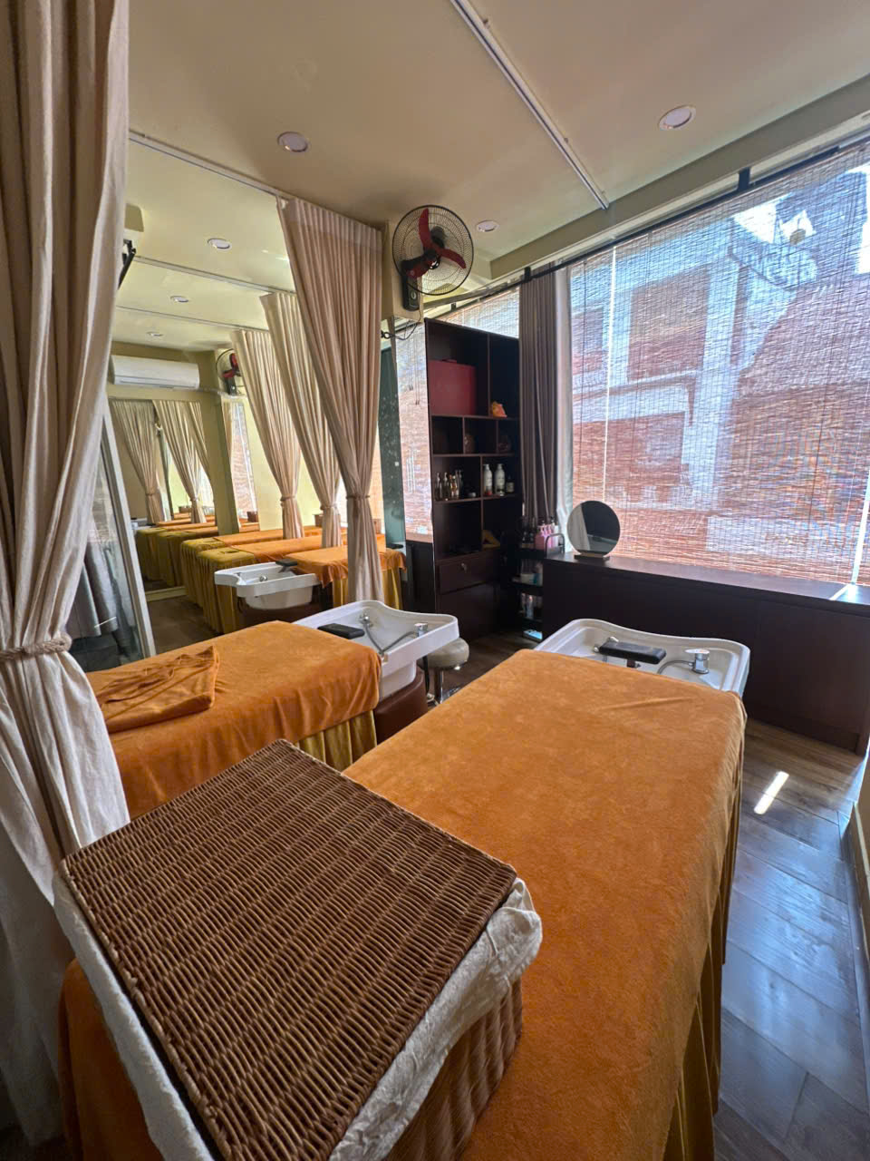 3. Tầng 1 6 ghế foot, nails+ 1 WC; Tầng 2 5 giường Body+ gội vòm dưỡng sinh, phòng thay đồ, WC