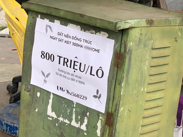 Theo ghi nhận của PV Dân trí, ở một số tuyến đường Hà Nội xuất hiện tờ rơi, quảng cáo đất Đồng Trúc, huyện Thạch Thất. Theo đó, lô đất được rao 800 triệu đồng với lời giới thiệu hấp dẫn như có đường lớn đổ nhựa, sổ đỏ thổ cư đất ở 100%.