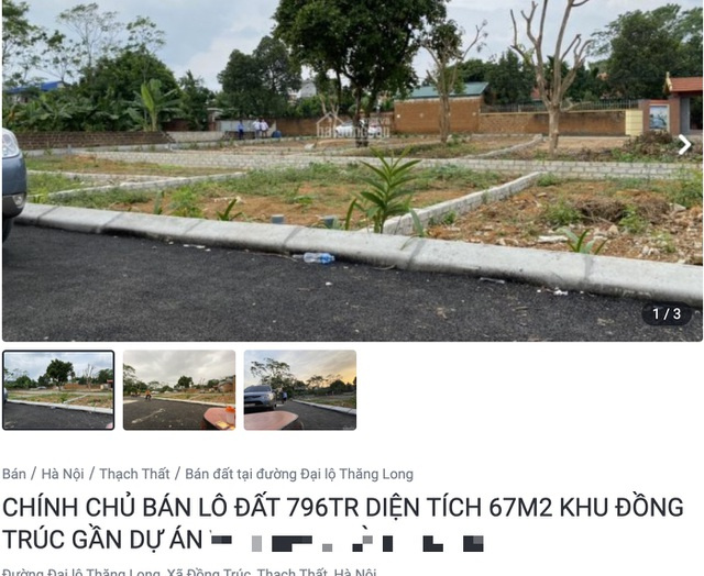 Lô đất được rao 800 triệu đồng với lời giới thiệu hấp dẫn như có đường lớn đổ nhựa, sổ đỏ thổ cư đất ở 100%, gần siêu đô thị 300ha.